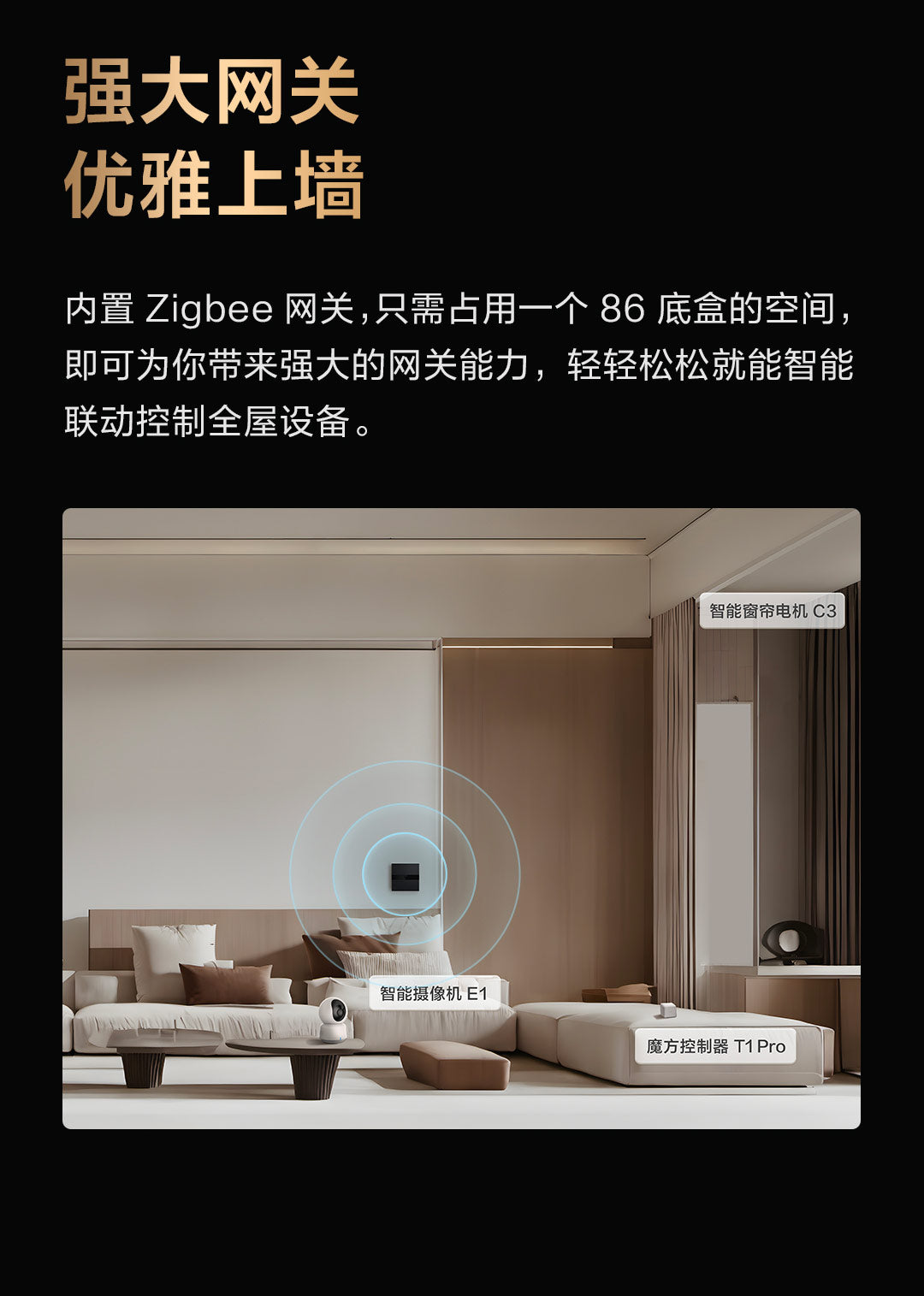 - 適合安裝於86 x 86 mm牆壁開關盒,並配備升級射頻設計,確保無線連接穩定可靠