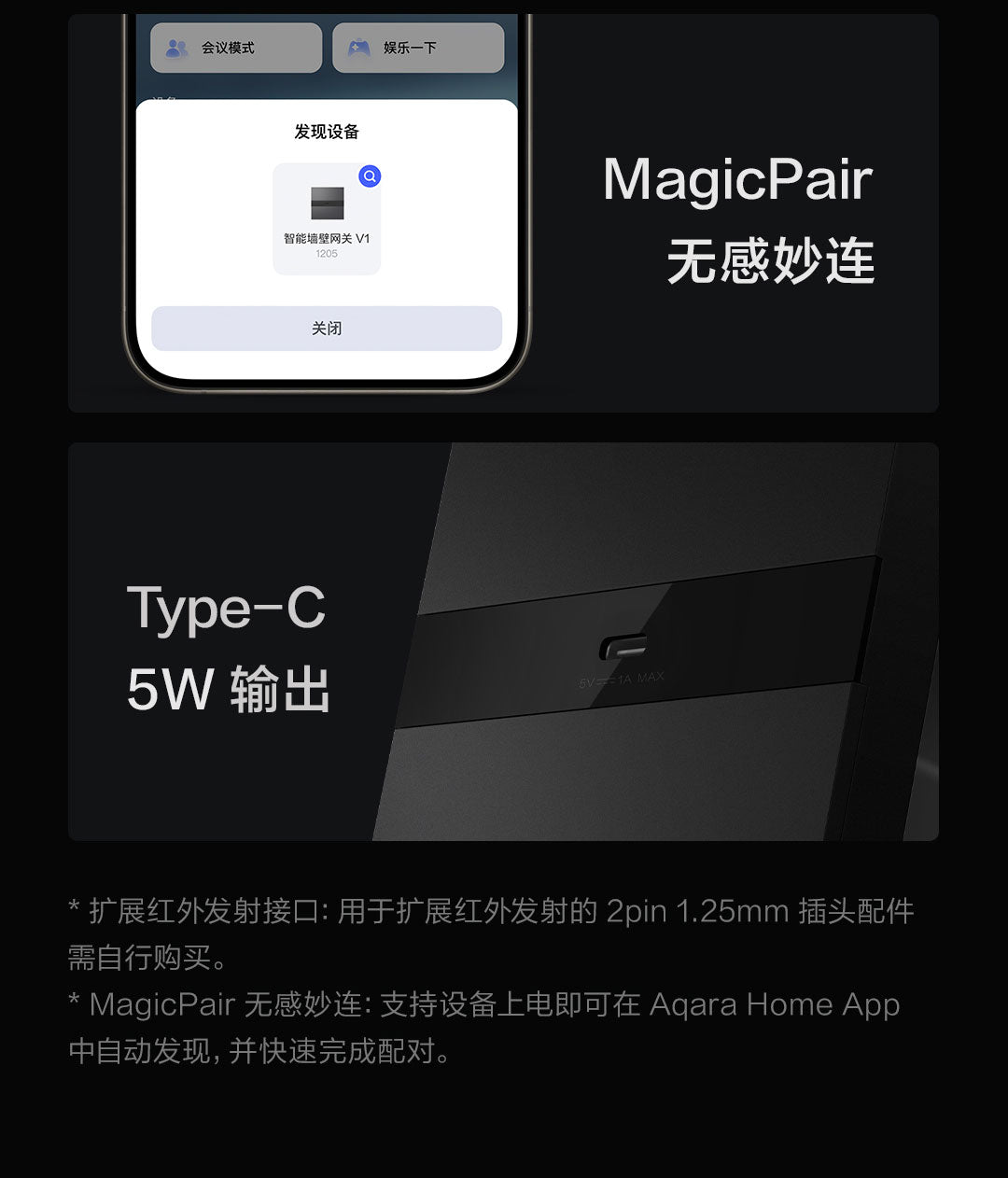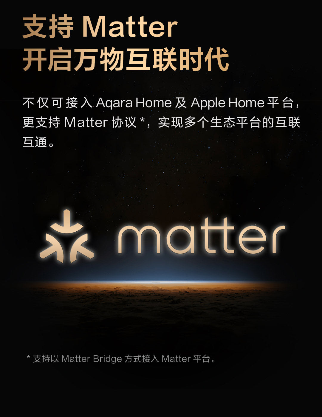 - 可支援Aqara Home 和 Apple Home,並可作為Bridge接入第三方Matter生態,實現更多自動化場景