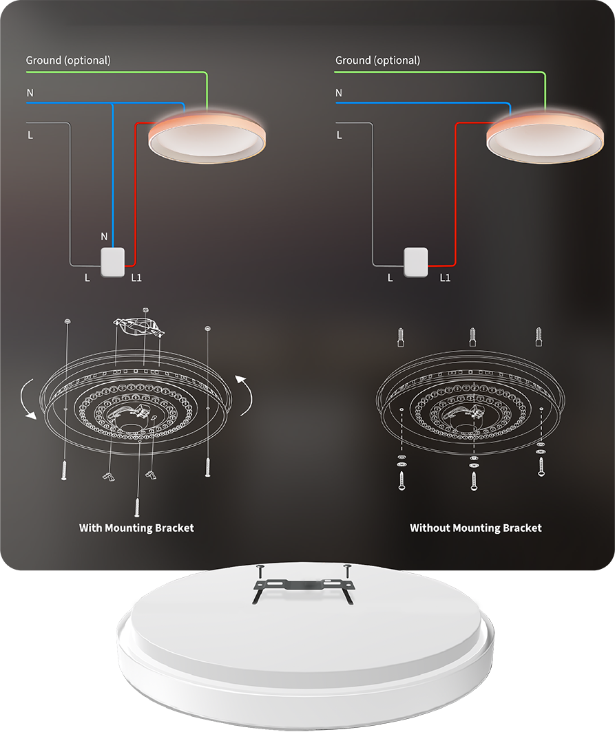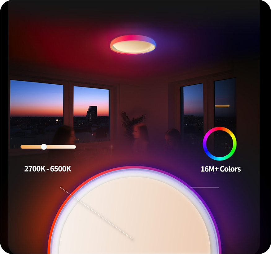 整合式 RGBIC 環形外圈,可營造令人驚嘆的漸變效果,為您的房間增添色彩氛圍。