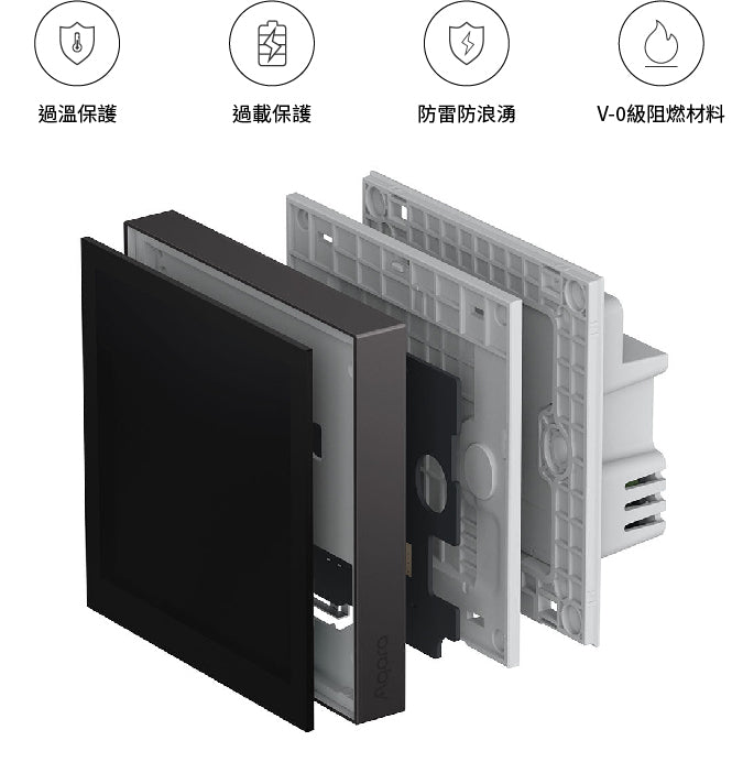 - 適合安裝於 86x86mm 牆壁開關盒
