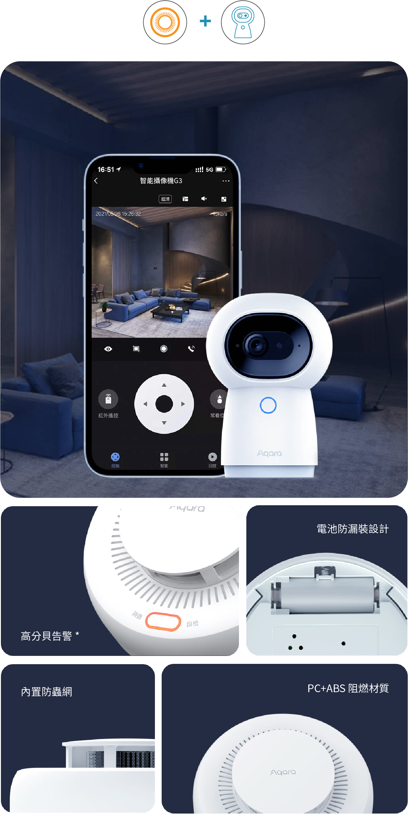 - 檢測到煙霧即時發出警報聲及手機推送通知