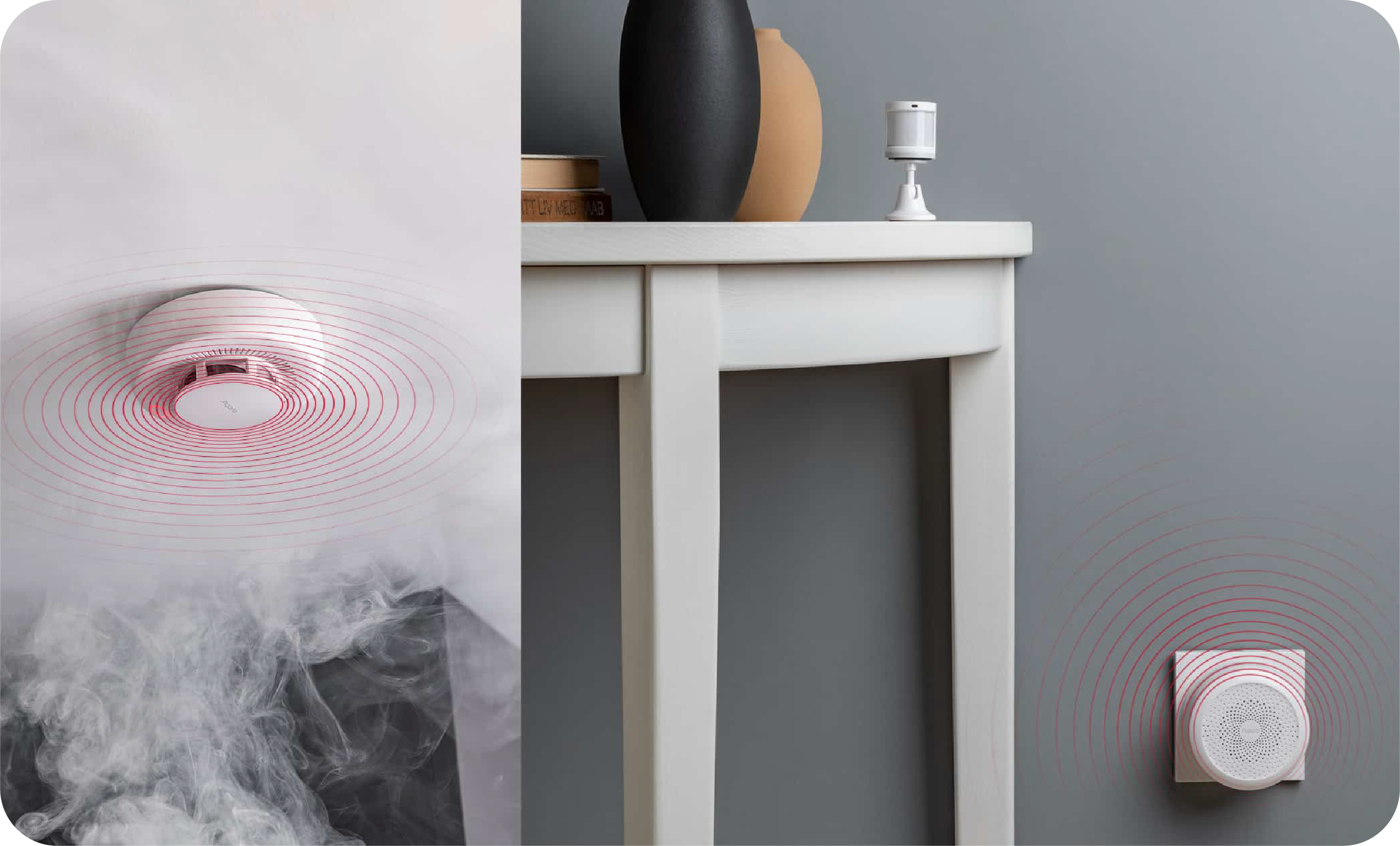 透過Aqara Hub探測器之間能自動連接,遇異常情況,自動觸發所有探測器,並同時發出警報。