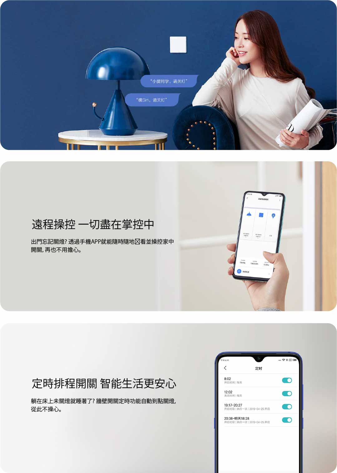 *不支援可調光、可調模式、變色燈、漸變燈、自帶控制器的燈具、燈帶。亦不支援高功率電器,詳情請諮詢客服。