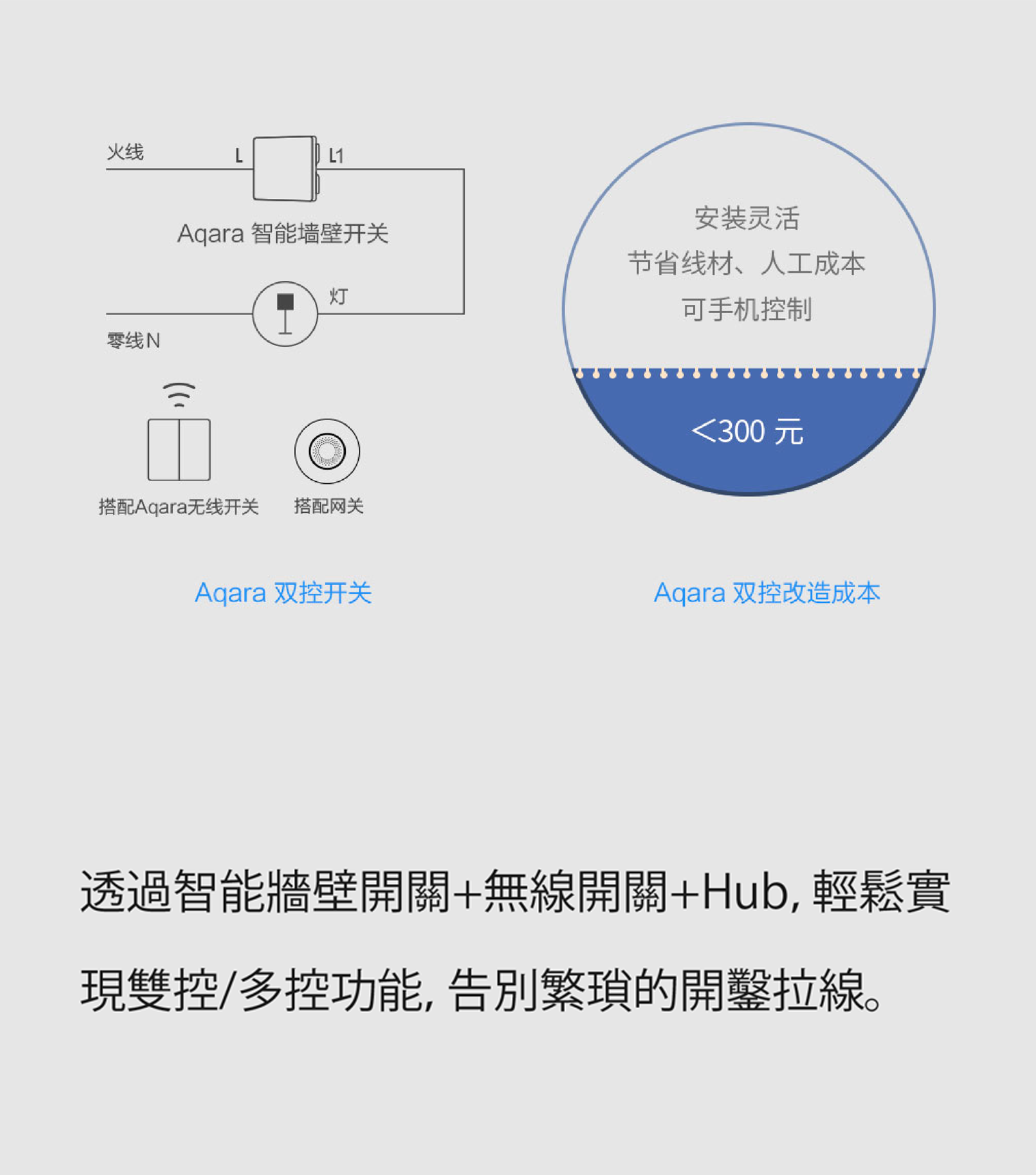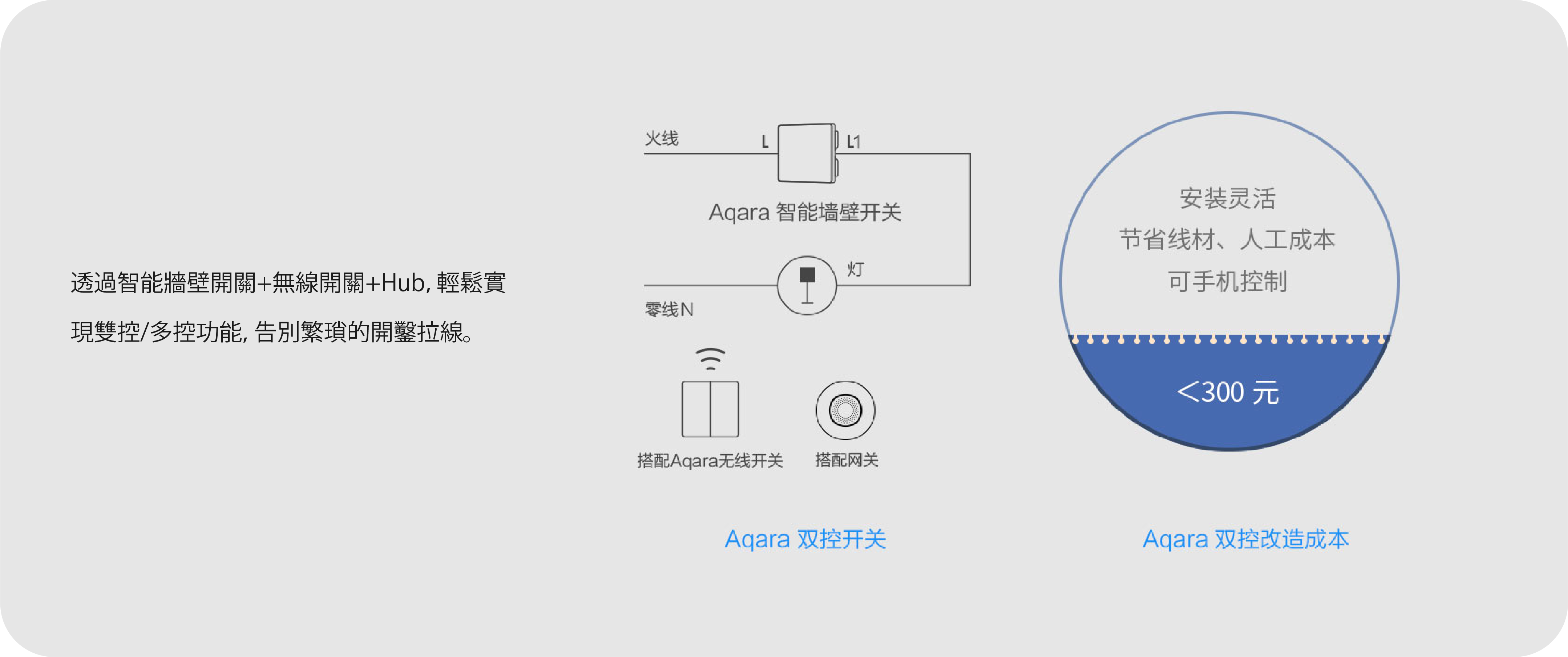 - 支援雙向開關,可配合Aqara Wall Switch使用