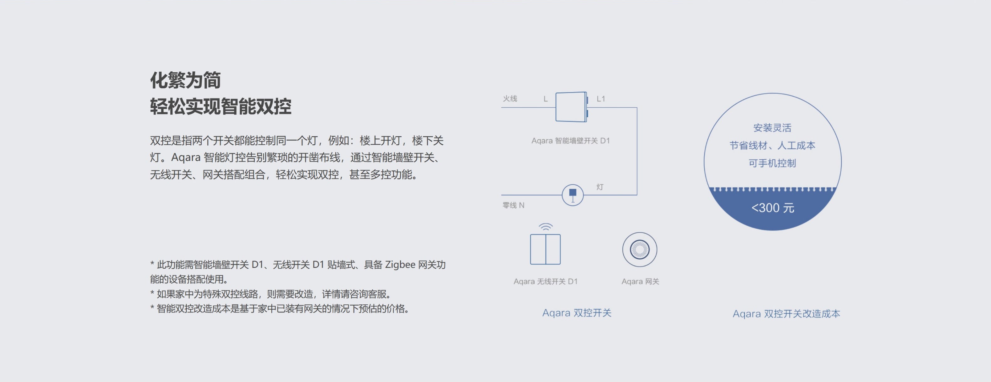 • 支援雙向開關,可配合 Aqara Wall Switch 使用