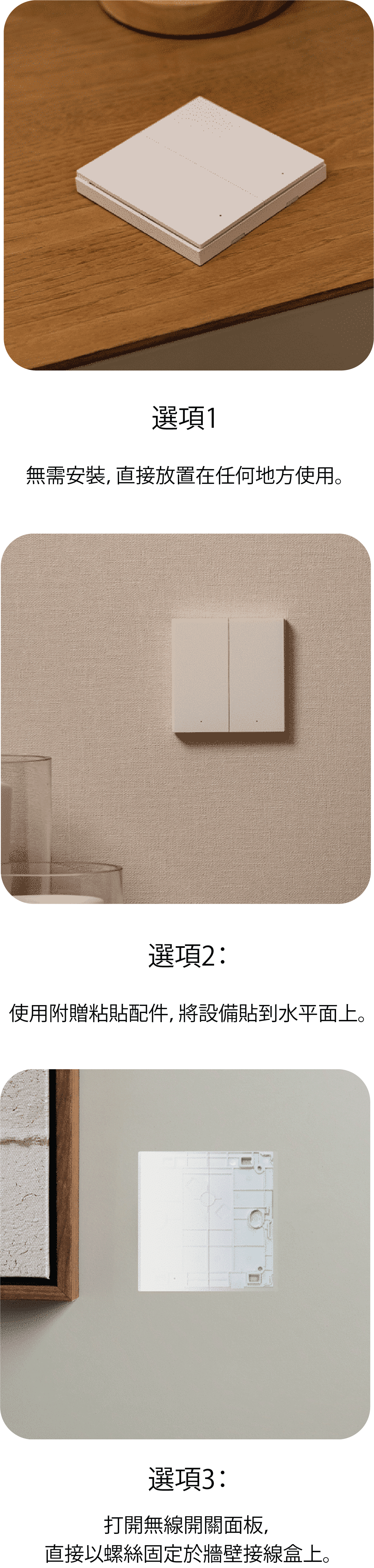- 安裝靈活,任何平面/牆身都可安裝