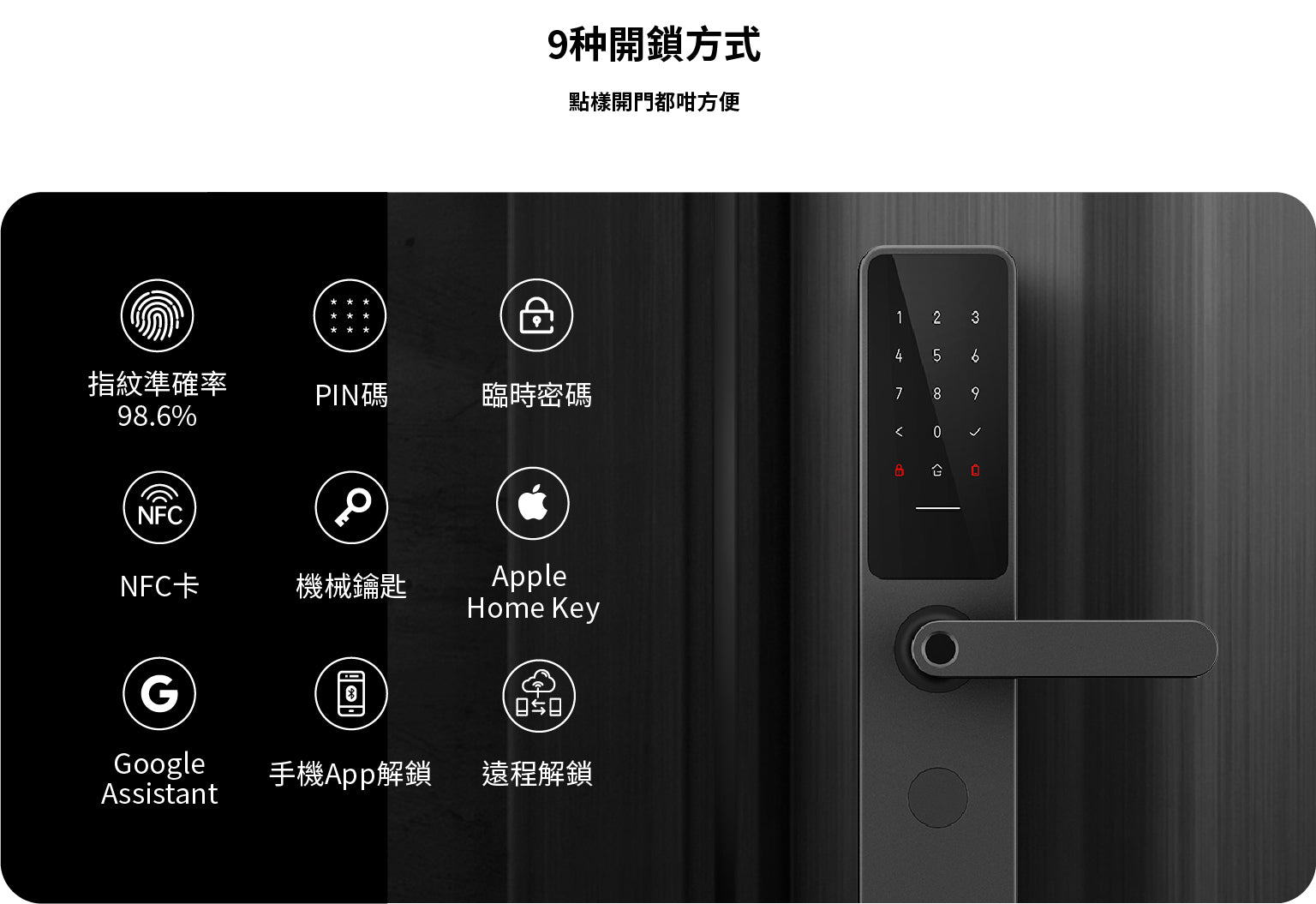 兼容 3 大智能家居系統 支援多達9種解鎖方法