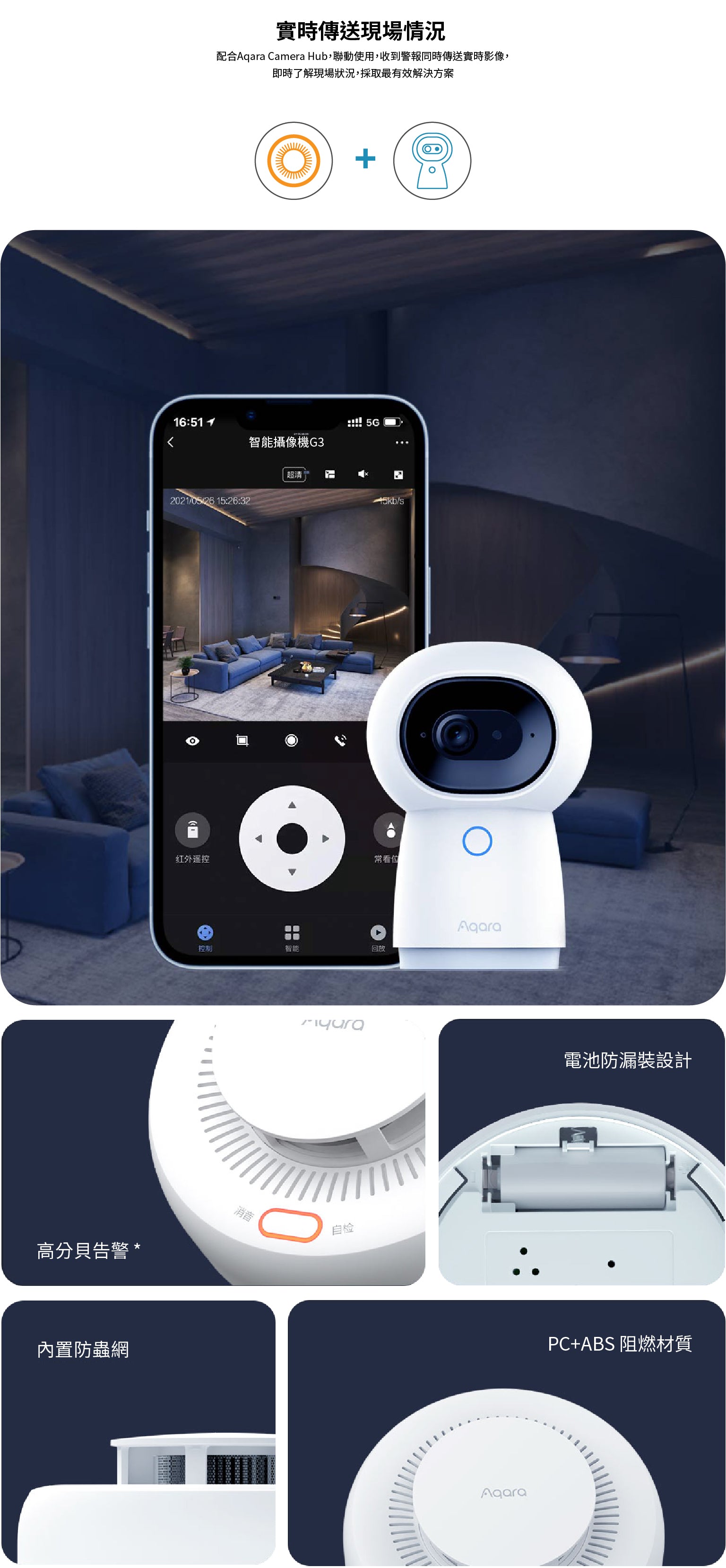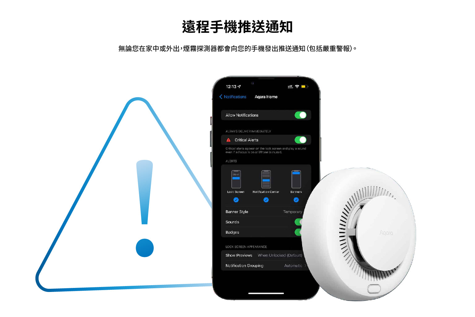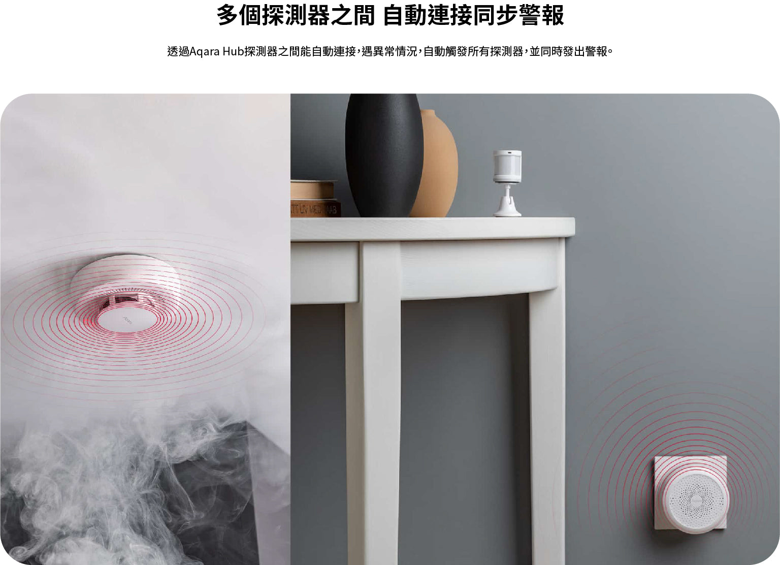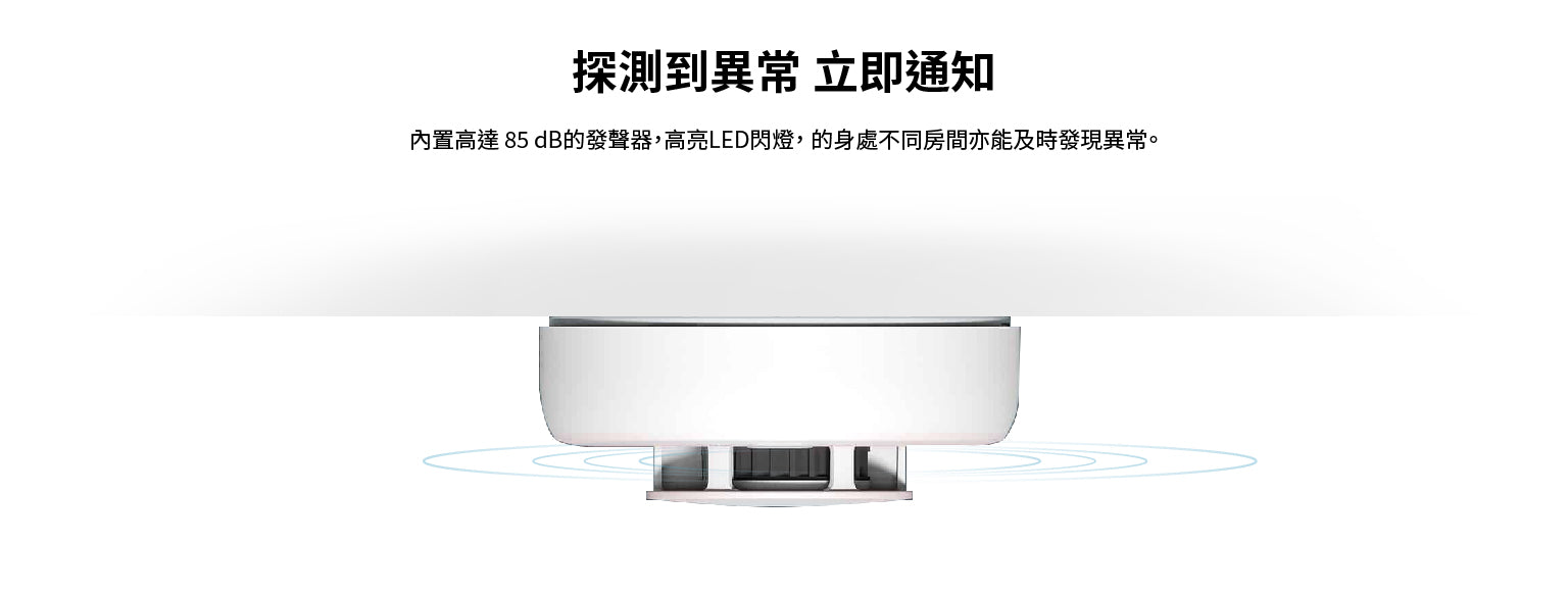 • 檢測到煙霧即時發出警報聲及手機推送通知