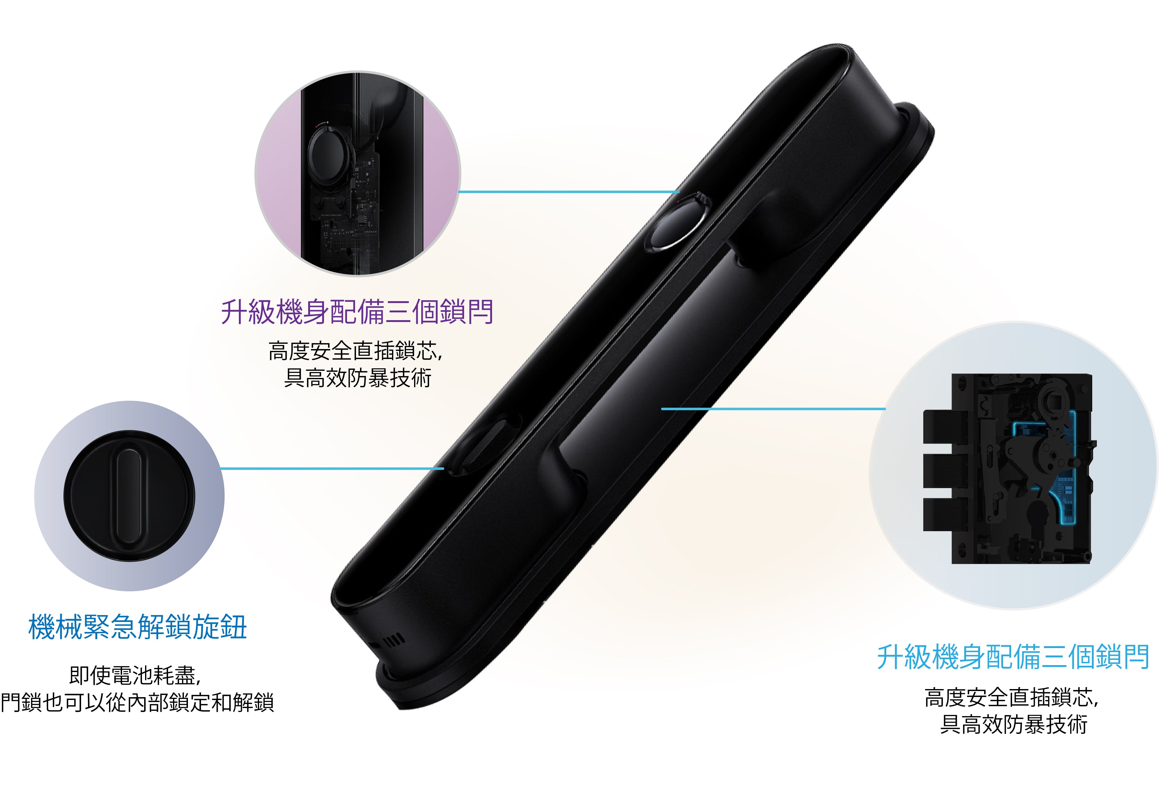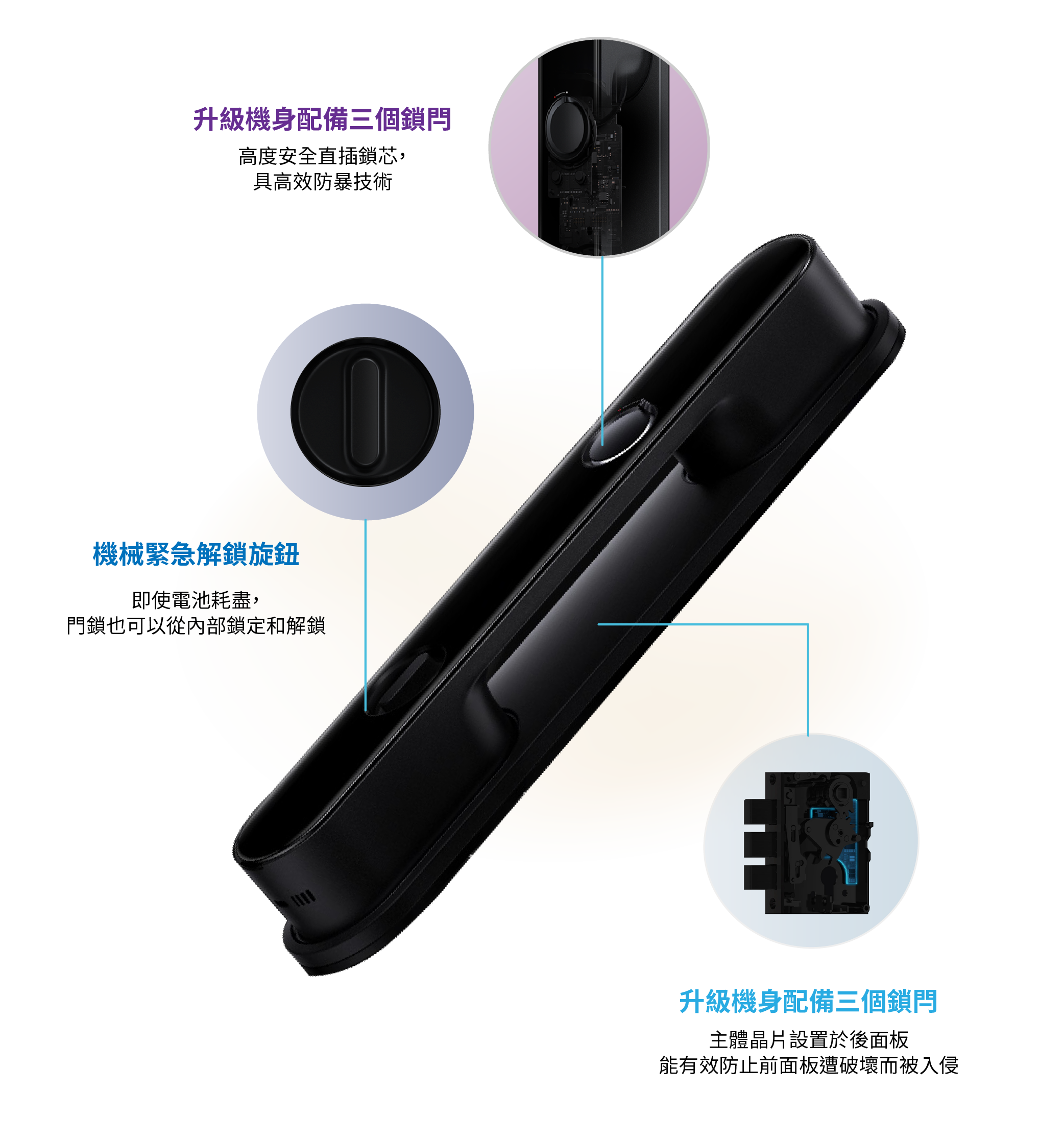 - 全自動鎖體,採用推拉式設計,大幅提升鎖體反應速度,自動解鎖及上鎖,無需二次操作