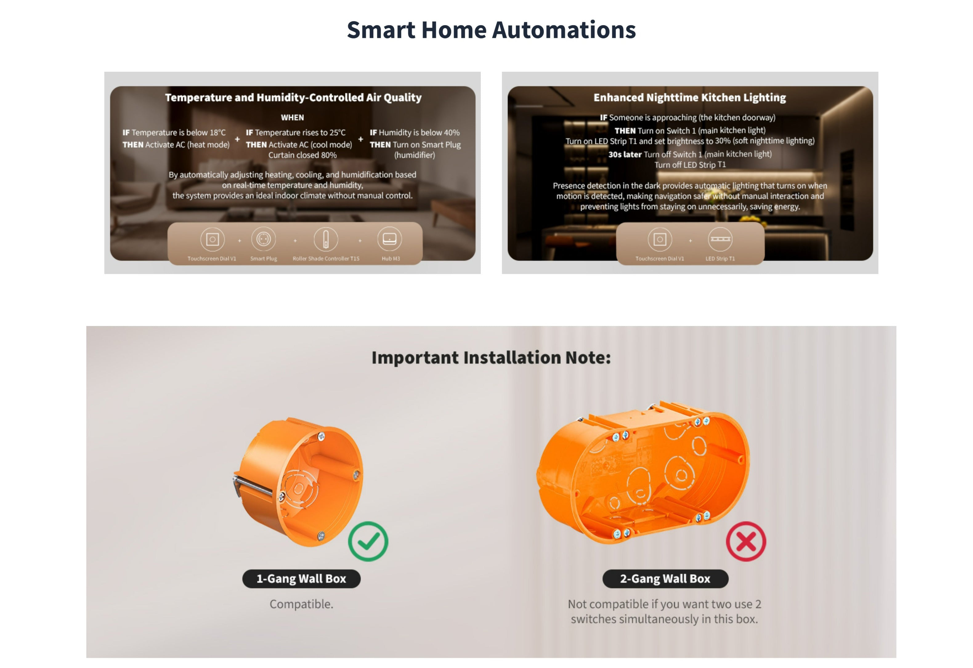 • 支援2個燈掣 + 6個無線開關,最多18個頁面 (最多可控制24個設備)